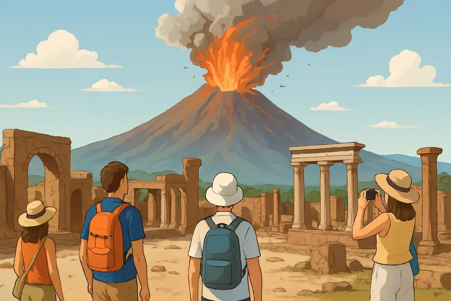 Il Vesuvio è l'unico vulcano attivo dell'Europa continentale. Si trova in Campania, vicino a Napoli. Fino al 79 d.C., la gente del posto lo conosceva come una montagna fertile, con i pendii ricoperti di vigneti e frutteti. Nessuno sospettava che fosse dormiente. Nell'agosto del 79 d.C. iniziò una serie di scosse, ma gli abitanti di Pompei, Ercolano e Stabia non vi prestarono attenzione. Il 24 agosto (secondo altre fonti, il 24 ottobre), il Vesuvio si risvegliò. Poche ore dopo, un'enorme colonna di cenere e roccia si sollevò verso il cielo, seguita da flussi piroclastici che distrussero tutto ciò che incontravano sul loro cammino.
