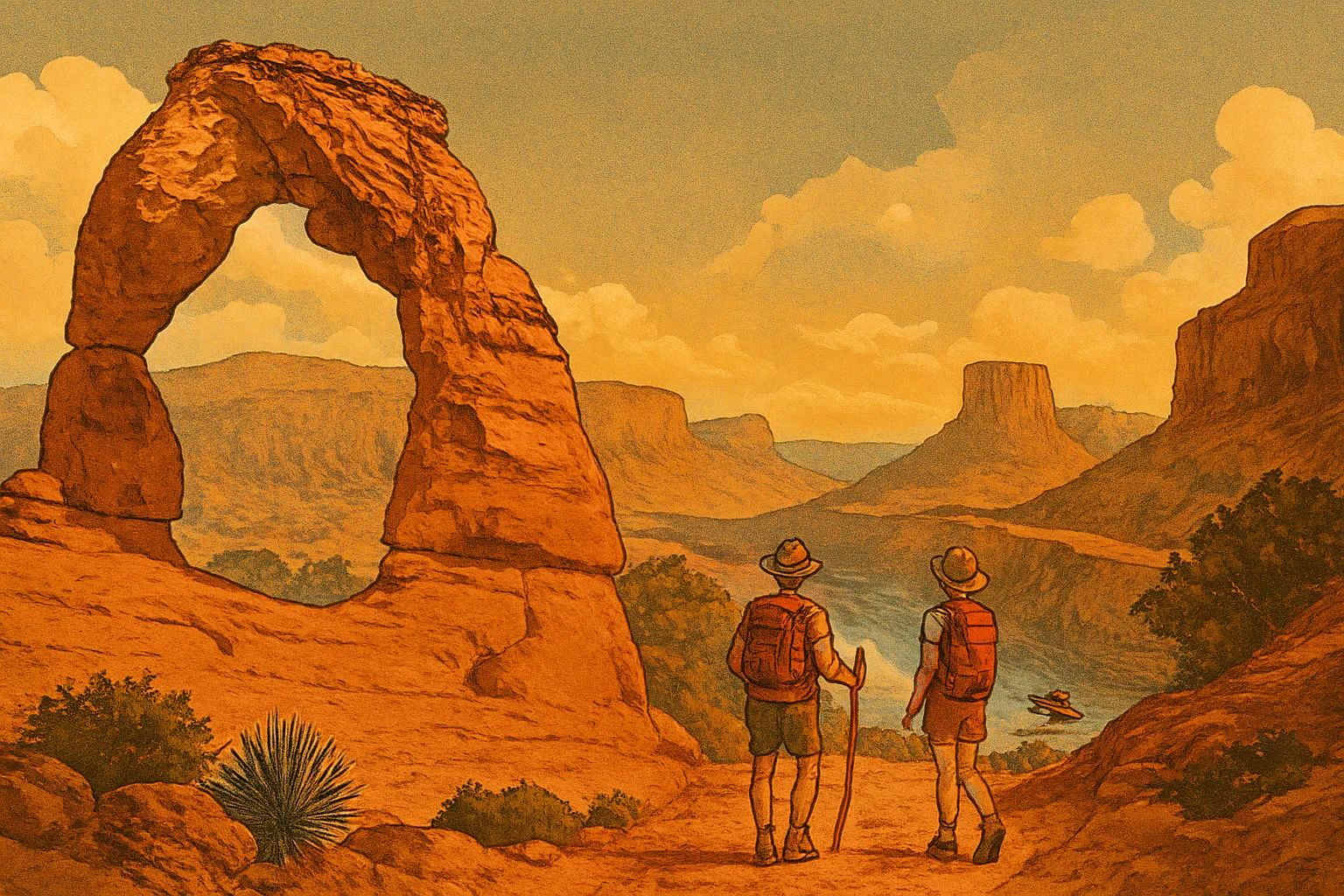Arrivando in serata, iniziate con una breve escursione al Corona Arch, una splendida formazione naturale meno affollata del famoso Delicate Arch, ma non meno suggestiva. Al tramonto, le scogliere si illuminano di sfumature infuocate e l'aria del deserto si riempie del profumo di salvia e ginepro.